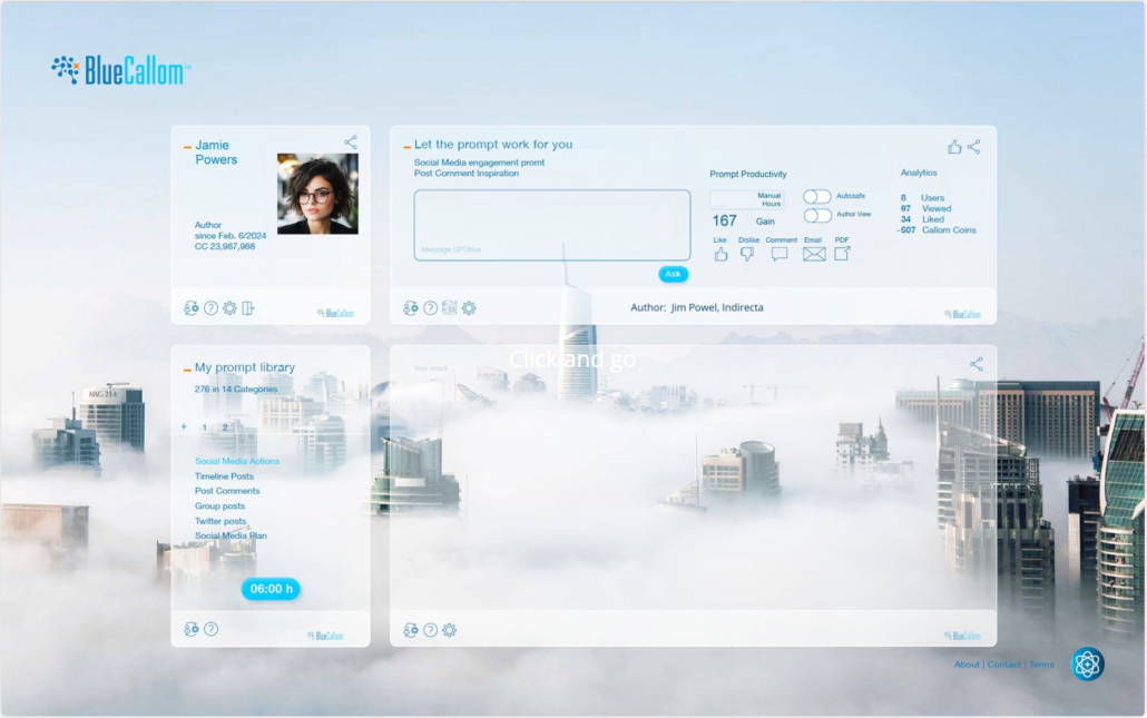 GPTBlue was originally developed as an internal development tool to create Generative AI compo-nents. We started the day the Chat GPT was announced. The success and development speed we ex-perienced with GPTBlue was mind-bending relative to conventional software development. It was also the point in time when we turned BlueCallom into an AI-Native software direction. Today, GPTBlue is driving one of the intellectually most demanding jobs, Disruptive Innovation.